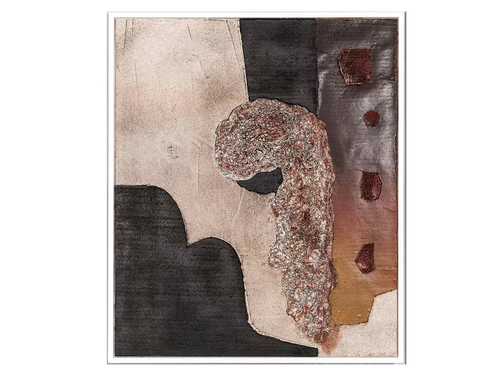 131 Dachpappe, Verputz (Spachtelmasse), Sacktuch, Alufolie 52x64cm